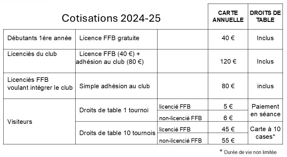 • Activités et horaires du club