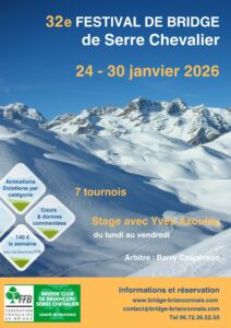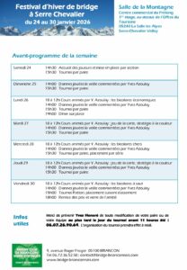 Tournois de régularité, Cours, Festivals de Bridge en janvier et en juin