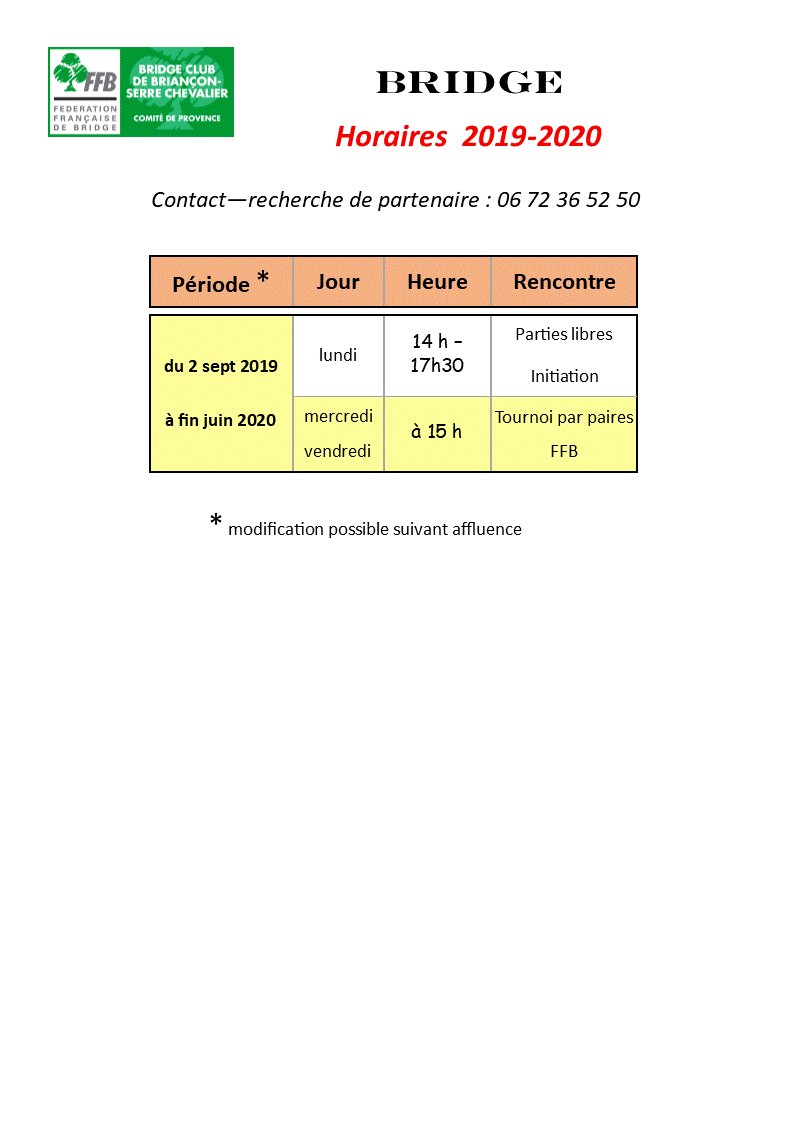 Tournois de régularité, Cours, Festivals de Bridge en janvier et en juin