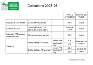 Tarifs Adhésions 2024-2025