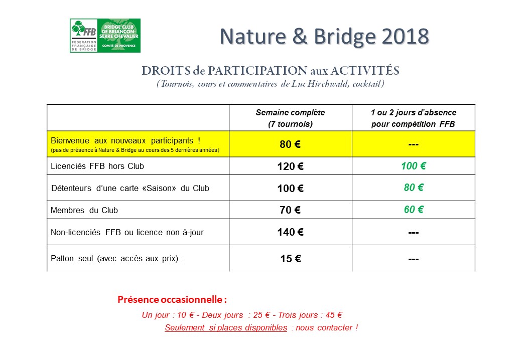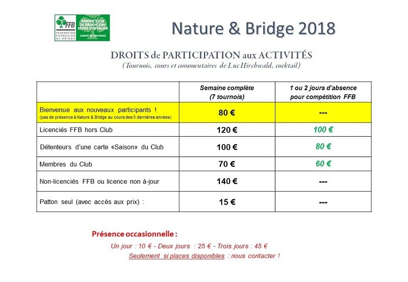 Tournois de régularité, Cours, Festivals de Bridge en janvier et en juin