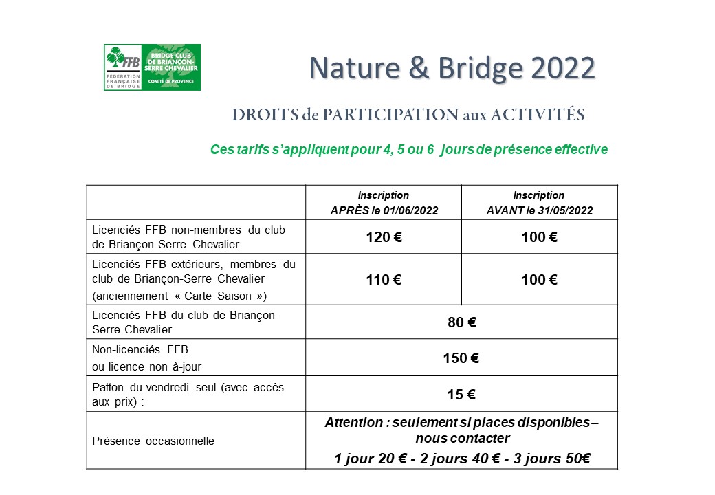Tournois de régularité, Cours, Festivals de Bridge en janvier et en juin